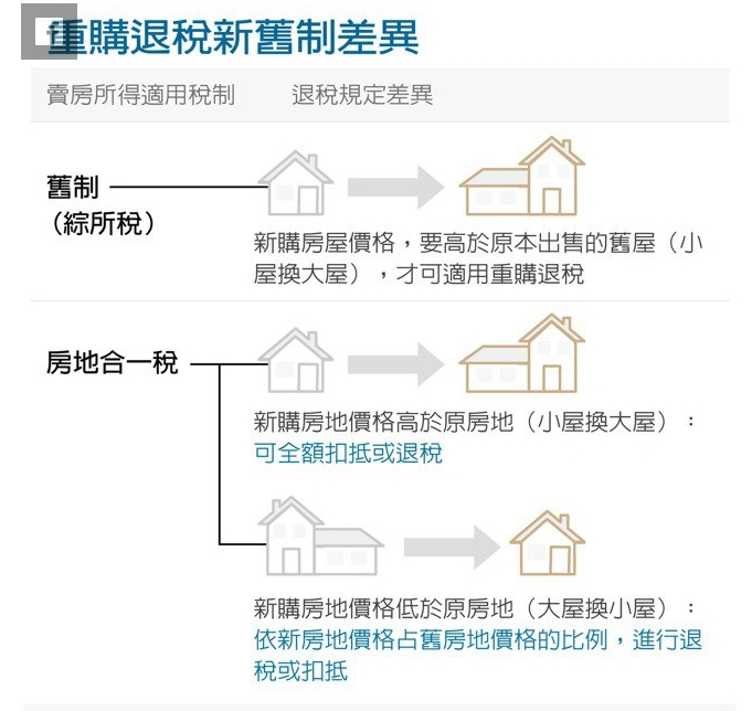 張小姐在2010年買了一間A房,後來又因換屋需求,在2015年買了B房,2016年決定賣掉A房,以此例來看,這位張小姐出售A房的所得,是適用舊制申報綜所稅,必須要B屋價格高於A屋,才能申請自用住宅重購退稅。