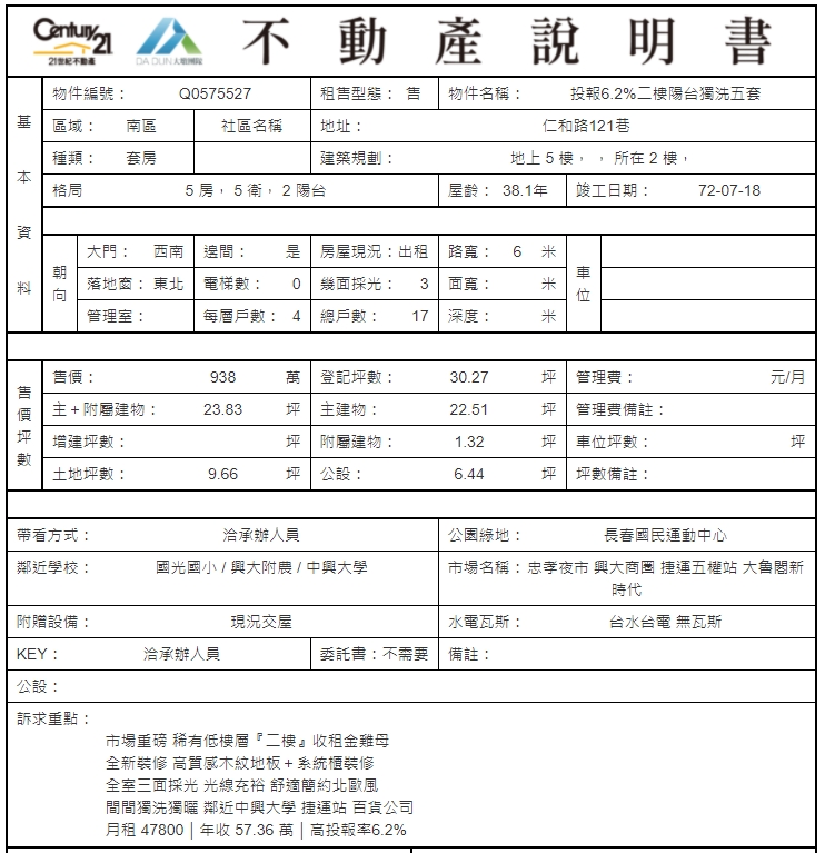 南區 | 投報6.2% | 精美五套 | 售價938萬