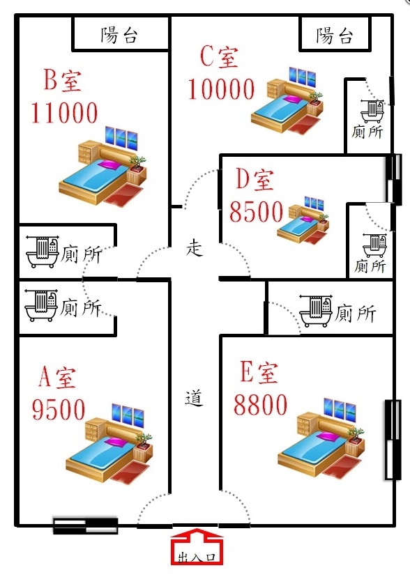 開價投報6.2%,月租 47800,年收 57.36 萬,陽台獨洗獨曬五套