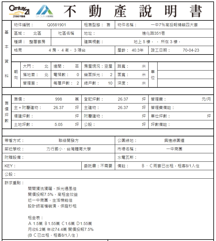 一中 | 投報7.5% | 精美四套 | 售價998萬
