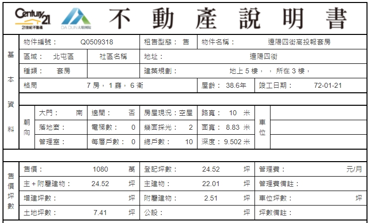 北屯區 | 投報7% | 5套+1間2房 | 售1080萬